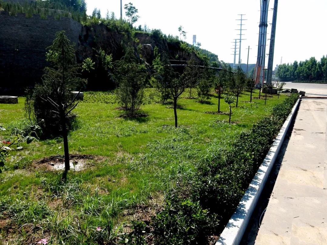 對廠區生產建設用地外的所有空曠場地實施綠化建設,對樹坑、電線桿坑使用草坪進行鋪墊。