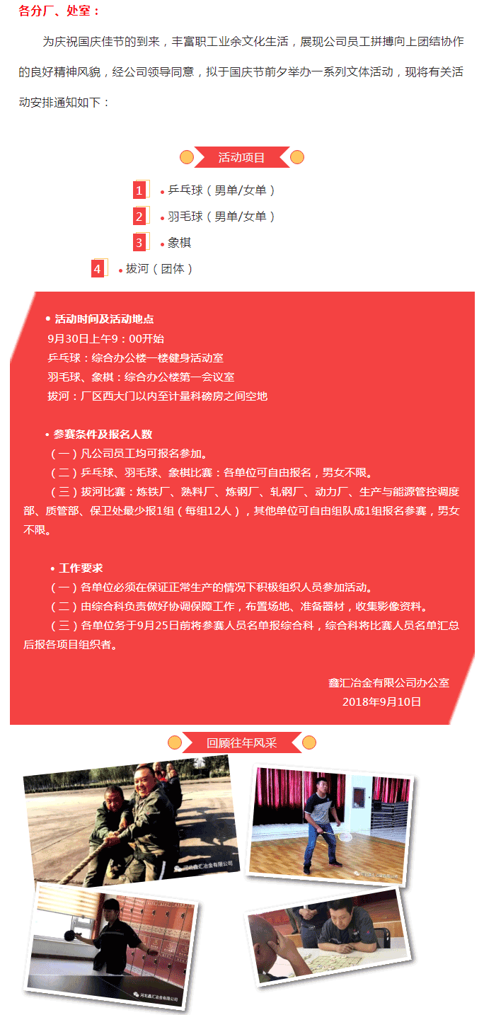 鑫匯公司關于舉辦國慶節文體活動的通知